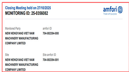 祝贺越南NEW HENGYANG VIET NAM MACHINERY MANUFACTURING COMPANY LIMITED2025年成功通过SGS-BSCI验厂