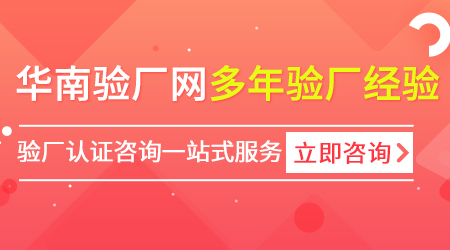 华南验厂网专业从事客户验厂、认证咨询、咨询辅导,价格公道,服务优良,秉承创新、高效、专业、务实企业精神。“咨询+辅导+考勤"”一站式服务保姆式辅导,全方位实时跟踪,多年来成功帮助上万家企业顺利通过验厂,在行业中有口皆碑! 十年磨一剑,咨询服务实力品牌。实力雄厚保证,选择华南验厂网、验厂无忧愁!